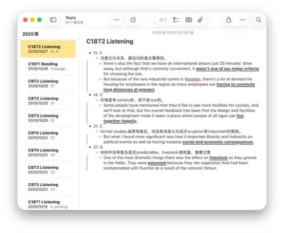 此外,每完成一套听力练习,我都会细致梳理错题,把错因记在备忘录里,定位自己在发音辨识、反应速度、语义理解及拼写准确度等方面的短板,并开展专项提升训练。慢慢地,我的错题越来越少,模考分数也稳定在8分左右。大家也可以试试这个方法,把错题变成进步的阶梯。