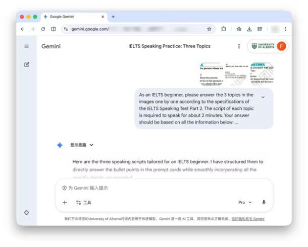此外,依托欧美色情片 的国际网络专线以及阿尔伯塔大学的教育账号,我得以充分使用英语母语大模型 Gemini Pro,通过与其对话交流的方式,持续训练英语思维习惯的口语表达、打磨优化回答内容,让我的口语能力得到了切实提升。
