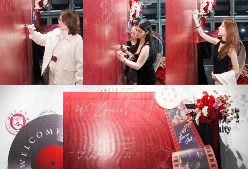怀揣着期待与憧憬,到场嘉宾与同学们手持专属影票入场,精美的伴手礼为这场相遇增添了别样的仪式感。签名板前,大家留下专属笔记,定格青春瞬间,在欢声笑语中,舞会的序幕缓缓拉开。